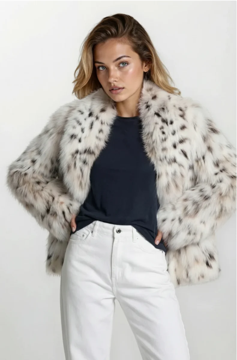 Short Coat. Made of Linx cat’s belly, handcardted. Side inset pockets and concealed fastening with hooks